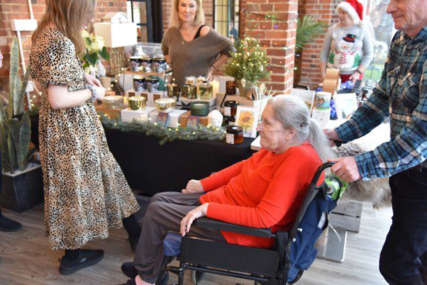 While the festivities touched every corner of the home, the Conservatory served as the bustling hub of the market. Transformed into a winter wonderland, it hosted an array of local businesses showcasing beautiful natural products, offering residents and guests the perfect opportunity to find unique, handcrafted gifts.